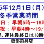 2025年11月28日(金曜日)☆12月1日(月曜日)より開店時間が遅くなります。平日は早朝5時から、土日祝は… 続きを読む: 営業時間変更 - 蒲原海岸、黒鯛