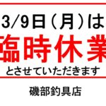 - 9日(月曜日)臨時休業のお知らせ