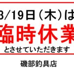店内修繕とレイアウト変更のため、赤イソメ、青イソメ、サバヒーの取り扱いを一時停止しております。イソメの再開は3… 続きを読む: 重要なお知らせ - 26日(木)営業時間変更のお知らせ