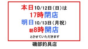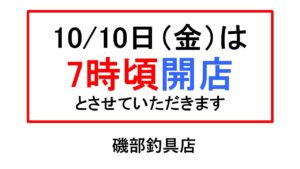 うきうきキャンペーン終了となりました 2023年10月30日 最終更新日時 : 2023年10月30日 店主 【リニューアル10周年うきうきキャンペーン】は、プレゼント用の遠投ウキ(50本)が無くなり、終了となりました。思っていたよりもお客様からの評判が良かったです。ありがとうございました。