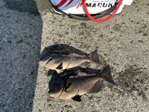 由比港、良型黒鯛上がりました 2024年5月25日 最終更新日時 : 2024年5月25日 店主 5月25日(土)、松尾様が由比港で釣った黒鯛になります。43cm、1.35kgありました。最近の釣果はあまりいい話聞かなかったので久しぶりにいい型の黒鯛が見れて良かったです。