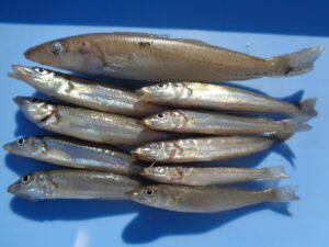 6月1日(土)、由比港でのNファミリー様の釣果です。早朝、暗い内は活発に釣れて明るくなるとぼちぼちになってきたので終了したとのことでした。このところあまり釣れなかったので、お子様も満足したようです。場所によっては、明るくなってきてもコンスタントに釣れる場所もあったようです。釣果UPは、コマセを少しでもいいから切らさず、仕掛けの投入ポイントにアジを止めること、それから、トリックでも釣れるけどママカリの方が釣れるとのことでした。