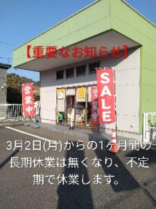 平日の不定期で作業をするので時々臨時休業します。