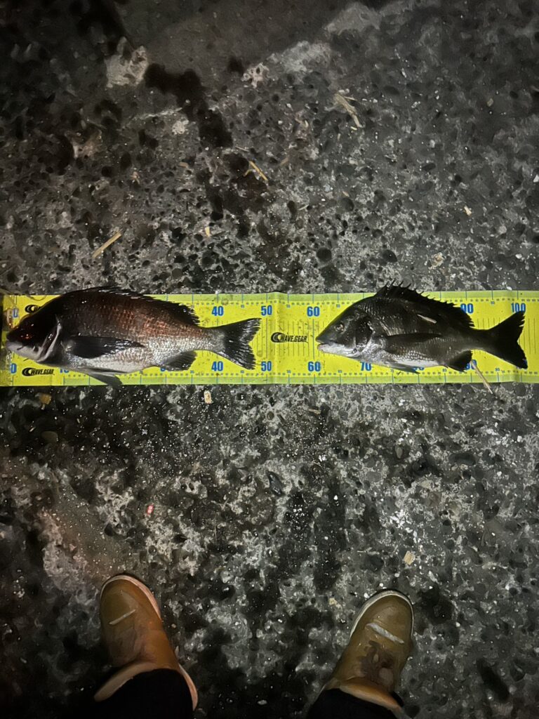 清水港、良型黒鯛2枚 2026年4月12日 最終更新日時 : 2026年4月12日 店主 富永様の昨夜の釣果になります。黒鯛49cmと41cmです。夜釣りお疲れ様でした。そして良型2枚おめでとうございます。