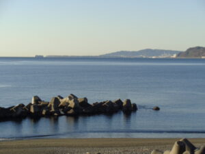 蒲原海岸、ベタ凪です(8時)