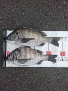 MH様、本日朝まずめの5枚です。夜明け前から釣り始め、ヘダイの40cmから始まって黒鯛4枚と約2時間30分で釣り上げたそうです。場所は蒲原海岸で遠投カゴ釣りです。
