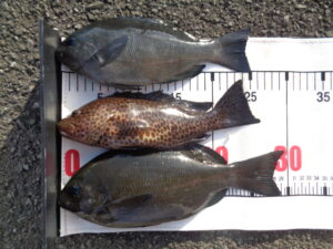 MR様、今日は昼から風が出るのを予想し、午前中勝負とのこと。狙いは黒鯛でしたが良型メジナを1枚上げた後に風が吹き込んで終了となりました。お疲れ様でした。
