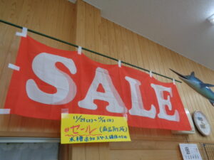 台風14号接近にともない、明日朝の開店時間は、天候と海況の状況を見て判断します。よろしくお願いします。(通常の4時には開店しません。)